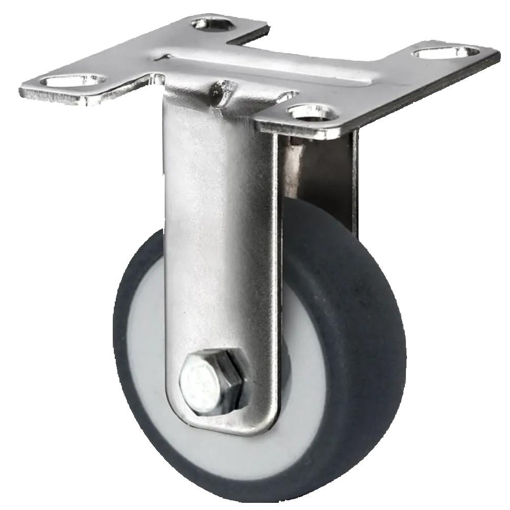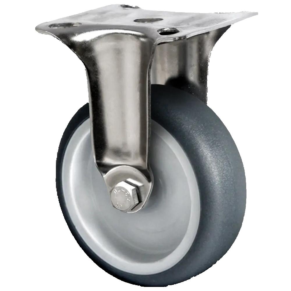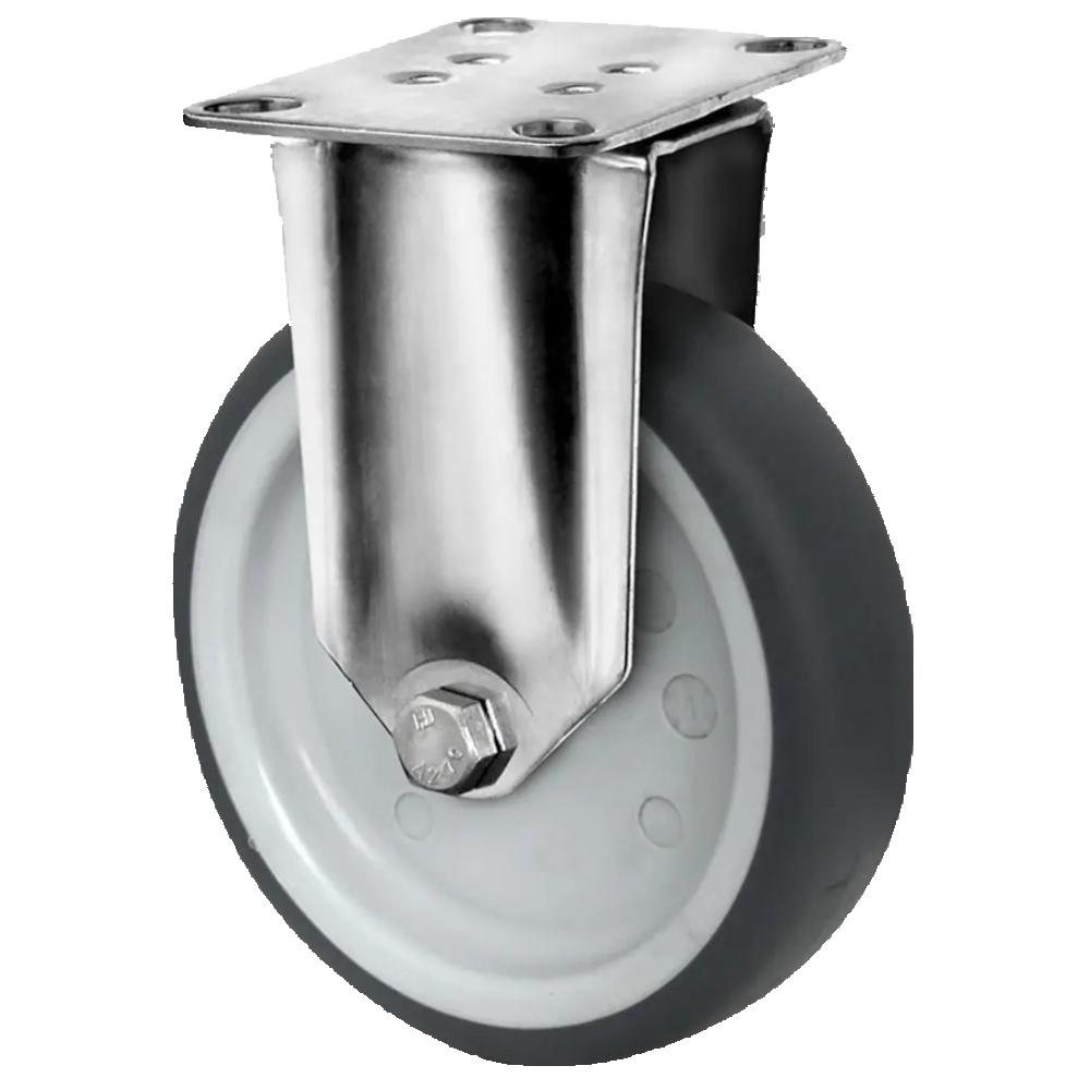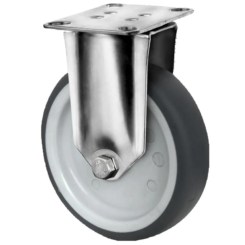 • Zestaw kołowy stały to nieruchoma rolka transportowa z korpusem koła z szarego polipropylenu i bieżnią z elastomeru termoplastycznego o twardości 95 Shore A w kolorze szarym, dostępna w średnicach od 50 do 125 mm oraz szerokościach kół od 19 do 32 mm.