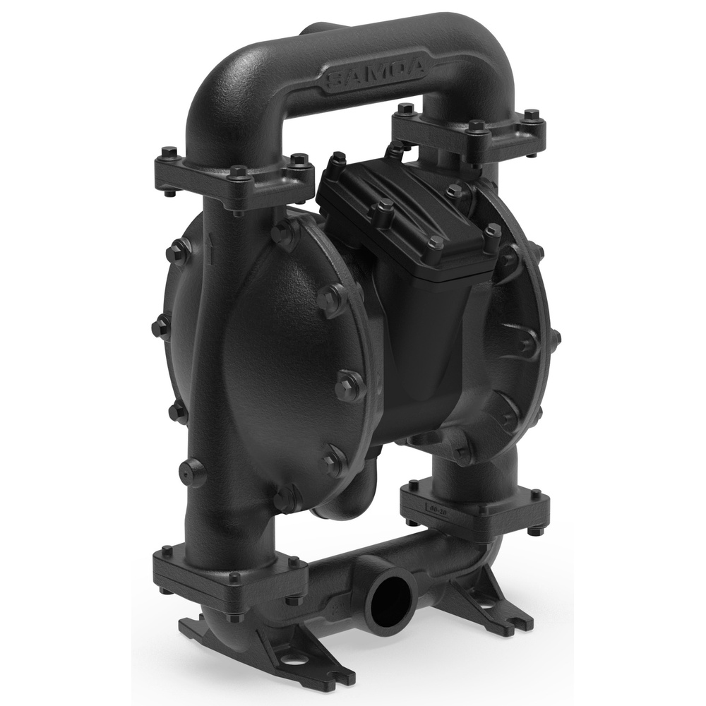 - Napędzana sprężonym powietrzem pompa dwumembranowa z odlewu metalowego o średnicy 2" (51 mm) osiąga wydajność tłoczenia do 650 l/min (172 gal/min) i oferuje szeroki wybór materiałów konstrukcyjnych i konfiguracji przyłączy.