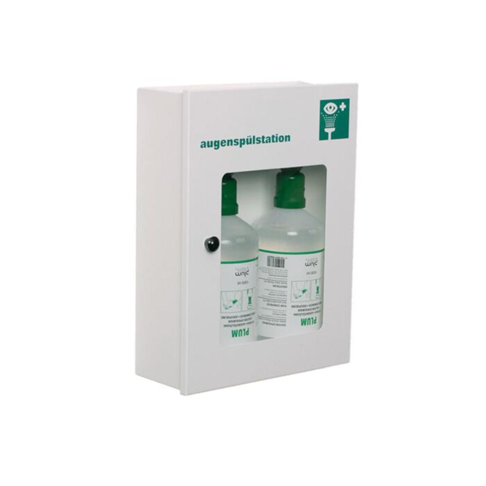 - Stacja do płukania oczu B-Safety znajduje się w pyłoszczelnej szafce ściennej z okienkiem podglądowym i zawiera dwie butelki do płukania oczu po 1000 ml sterylnego roztworu chlorku sodu (0,9 %). Umożliwia szybkie udzielenie pierwszej pomocy w celu wypłukania z oka ciał obcych, takich jak kurz lub brud. Stacja jest szczególnie odpowiednia dla miejsc pracy, takich jak warsztaty, i można ją szybko otworzyć w nagłym wypadku.