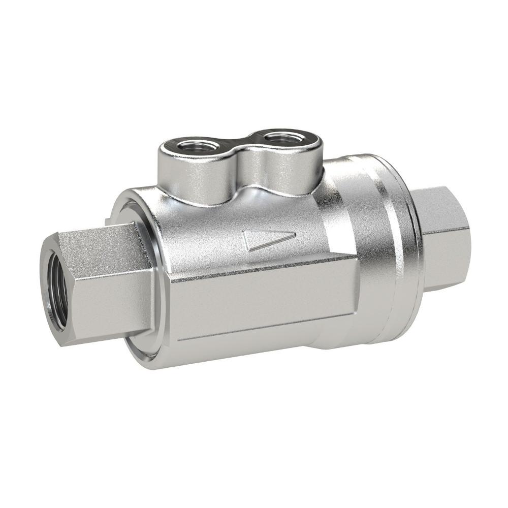 - 2/2-drożny zawór współosiowy jest wykonany z niklowanego mosiądzu i wyposażony w uszczelki NBR.