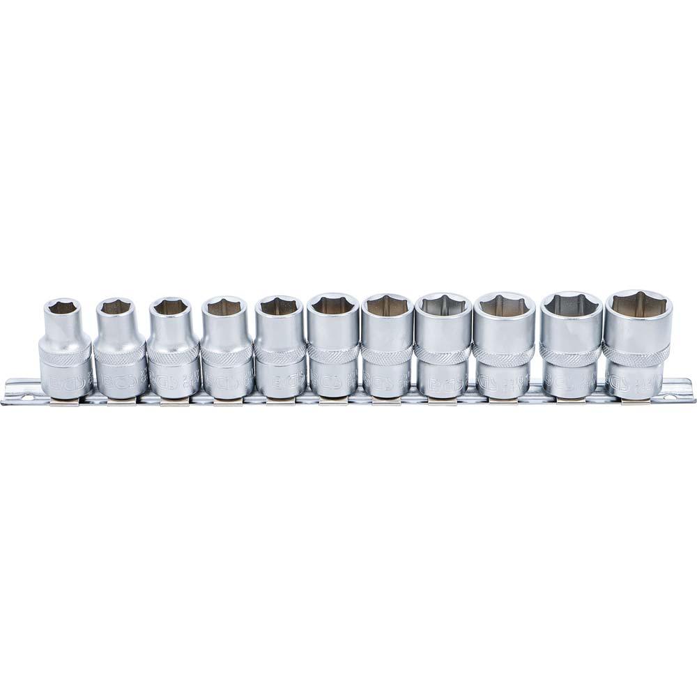 - Ten zestaw nasadek do kluczy nasadowych zawiera 11 sześciokątnych nasadek do kluczy nasadowych wykonanych ze stali chromowo-wanadowej, matowo chromowanych.